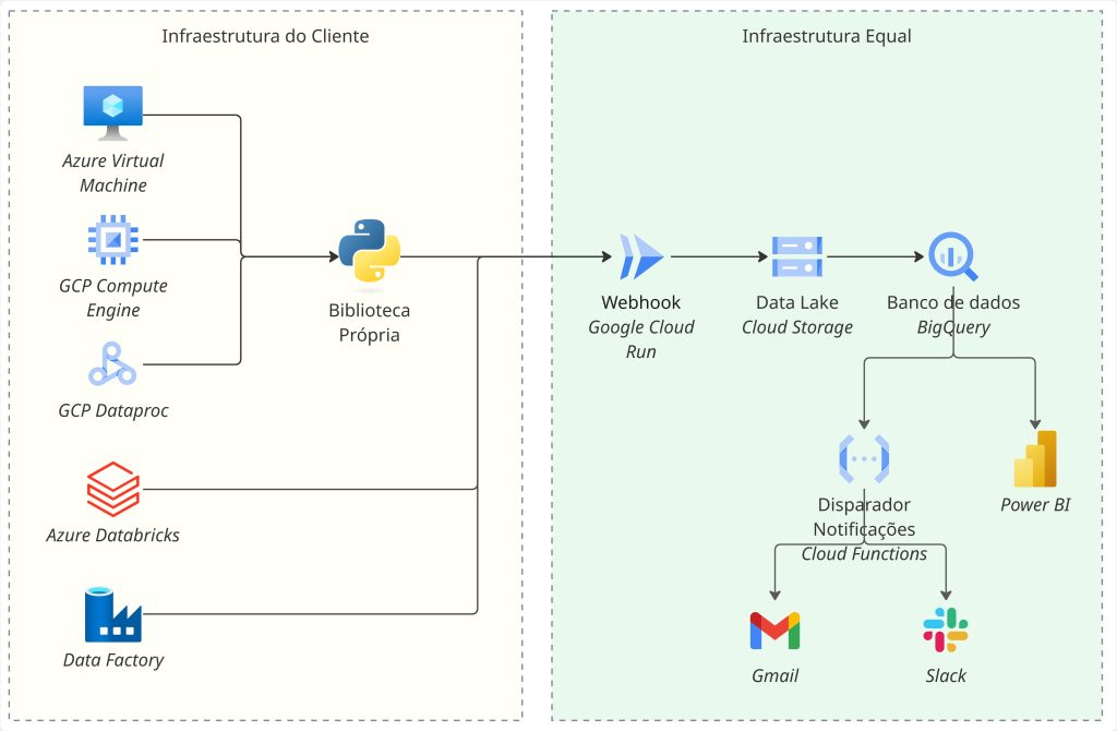 Colocar em prática uma cultura de governança e monitoramento robusta torna-se um desafio complexo em ambientes multicloud. Na equal, trabalhamos com diversos provedores de nuvem e serviços distintos, adaptando-nos à infraestrutura de cada cliente. Por exemplo, enquanto em um projeto executamos extrações em uma VM no Azure, em outro processamos os dados no Databricks ou utilizamos o Dataproc do Google Cloud.